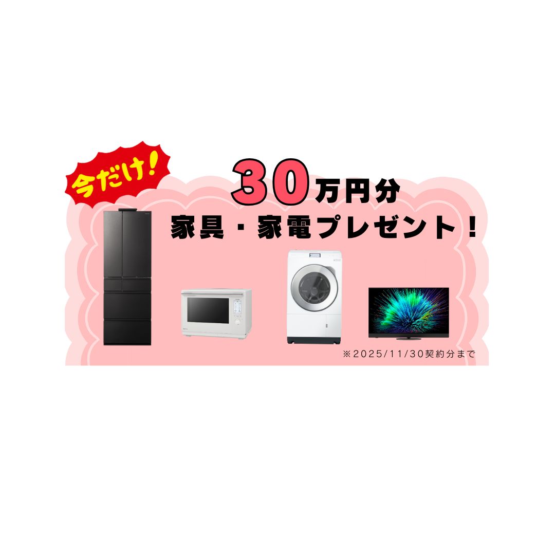 牛島西建売住宅を契約すると、今だけ家具・家電30万円分プレゼントいたします!